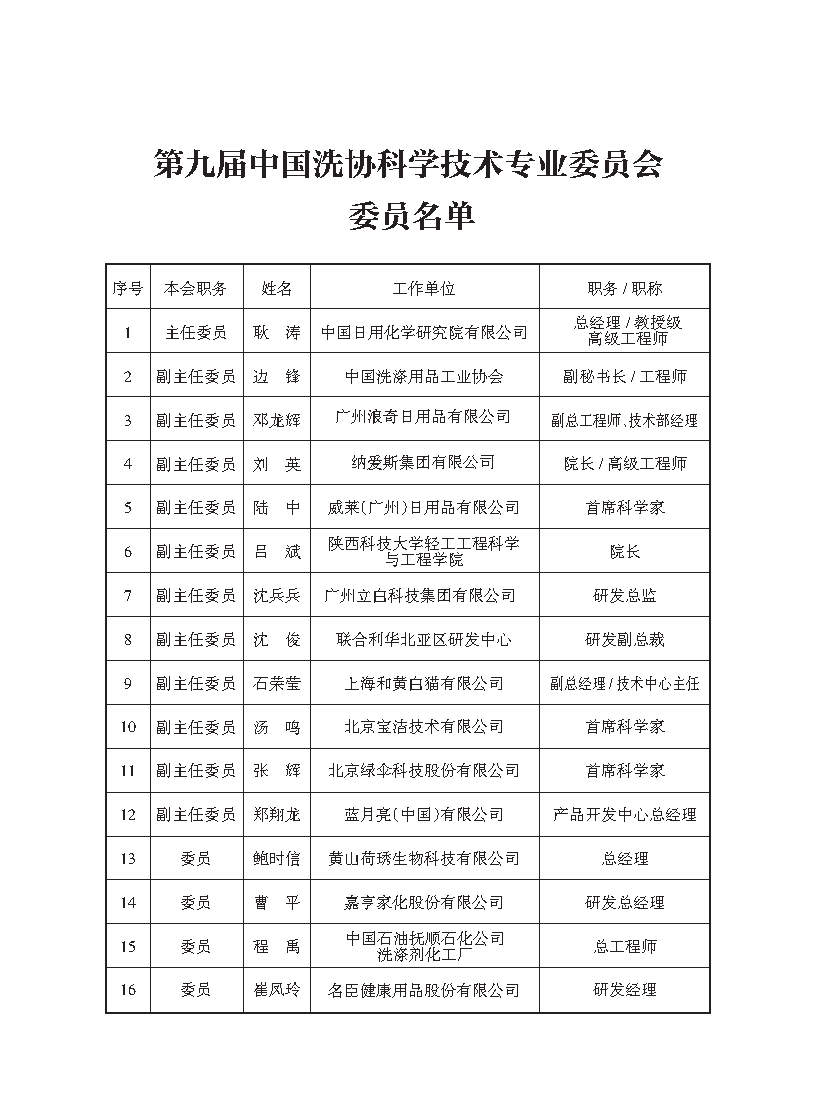 中國洗滌用品工業(yè)協(xié)會科學技術專業(yè)委員會