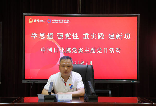 參觀結(jié)束后,中國日化院全體黨員干部召開了“學(xué)思想 強(qiáng)黨性 重實踐 建新功”主題會議。會議由黨委委員、紀(jì)委書記、副院長張小旦主持。