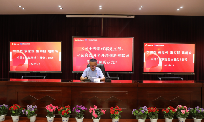 黨委委員、副院長程寧宣讀了《關(guān)于表彰紅旗黨支部、示范崗黨員和開拓創(chuàng)新奉獻(xiàn)崗黨員干部的決定》。