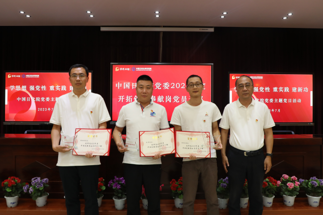 黨委書記、院長耿濤為開拓創(chuàng)新奉獻(xiàn)崗黨員干部頒獎并合影。