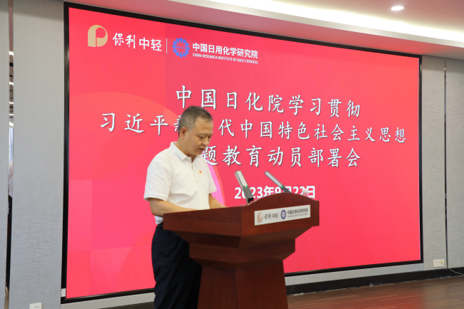 9月22日,中國(guó)日化院召開(kāi)學(xué)習(xí)貫徹習(xí)近平新時(shí)代中國(guó)特色社會(huì)主義思想主題教育動(dòng)員部署會(huì)。中國(guó)日化院黨委書(shū)記、總經(jīng)理耿濤作動(dòng)員部署講話,保利中輕黨委辦公室副主任王世明以視頻方式到會(huì)指導(dǎo),會(huì)議由中國(guó)日化院紀(jì)委書(shū)記、副總經(jīng)理張小旦主持。