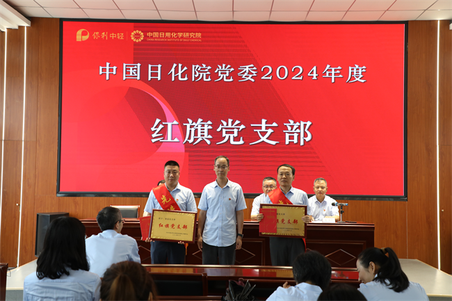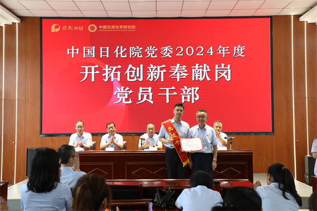 會議首先進行了2024年中國日化院“兩優(yōu)一先”表彰活動,黨委委員、副總經(jīng)理程寧宣讀了《關(guān)于表彰紅旗黨支部、示范崗黨員和開拓創(chuàng)新奉獻崗黨員干部的決定》。