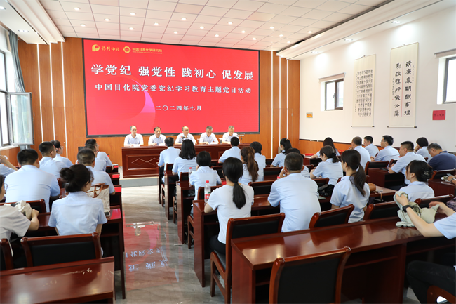 表彰活動結(jié)束后,黨委書記、總經(jīng)理耿濤講授題為《深入學(xué)習(xí)貫徹<條例>精神 強化紀(jì)律意識 加快推動中國日化院科技創(chuàng)新和高質(zhì)量發(fā)展》的專題黨課。黨課生動嚴(yán)謹(jǐn),內(nèi)容充實。耿書記分別從深刻認(rèn)識開展黨紀(jì)學(xué)習(xí)教育的重要意義;深入學(xué)習(xí)貫徹《條例》,把牢正確政治方向,不斷推動科技創(chuàng)新工作高質(zhì)量發(fā)展;堅持人才是第一資源,最大限度激發(fā)人才創(chuàng)新創(chuàng)造活力;強化使命擔(dān)當(dāng),持續(xù)推動日化院高質(zhì)量發(fā)展等方面進行講述。他結(jié)合國家重大戰(zhàn)略需求、科技成果轉(zhuǎn)化、人才體系建設(shè)、黨建與業(yè)務(wù)深度融合四個方面存在的短板,指出要從強化黨建引領(lǐng),推動改革創(chuàng)新以強化戰(zhàn)略引領(lǐng),打造戰(zhàn)略性新興產(chǎn)業(yè)和未來產(chǎn)業(yè),提升自主知識產(chǎn)權(quán)管理水平,實施人才強企戰(zhàn)略等方面推動落實。最后,他強調(diào),全體黨員干部要深刻認(rèn)識到黨紀(jì)學(xué)習(xí)教育的重大意義,全面提高政治站位,做到心往一處想、勁往一處使,形成推動科技創(chuàng)新和發(fā)展改革的強大合力,不斷推動日化院高質(zhì)量發(fā)展。
