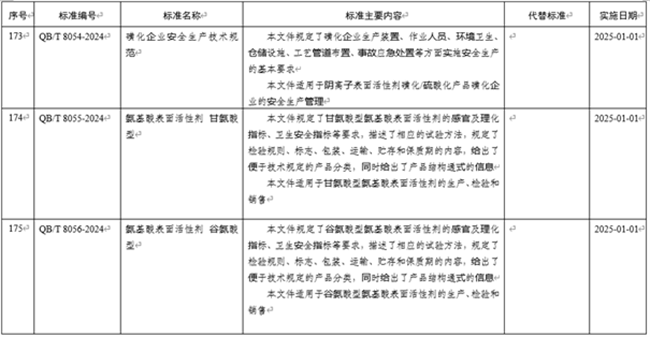 QBT 8055-2024《氨基酸表面活性劑 甘氨酸型》等6項行業(yè)標(biāo)準(zhǔn)獲批發(fā)布