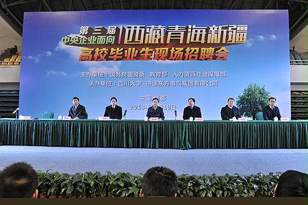 為貫徹黨的十八大和十八屆三中全會(huì)精神,深入落實(shí)中央關(guān)于援藏、援青、援疆工作的總體部署,積極做好促進(jìn)西藏青海新疆高校畢業(yè)生,特別是少數(shù)民族高校 畢業(yè)生就業(yè)工作,12月18日,國(guó)資委、教育部、人力資源社會(huì)保障部在四川大學(xué)聯(lián)合舉辦“第三屆中央企業(yè)面向西藏青海新疆高校畢業(yè)生現(xiàn)場(chǎng)招聘會(huì)”。國(guó)資委 副主任徐福順、人力資源社會(huì)保障部副部長(zhǎng)信長(zhǎng)星出席招聘會(huì)并講話。74家中央企業(yè)代表和20多所高校代表參加了本次招聘會(huì)。