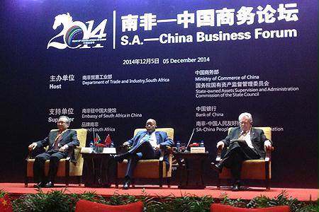 2014年12月5日,國務院國資委副主任黃淑和應邀出席南非貿(mào)工部在京舉辦的“南非—中國商務論壇”并致辭。南非總統(tǒng)祖馬出席并作主旨發(fā)言。南非駐華大使、貿(mào)工部部長、金磚國家工商理事會中方及南非方代表分別致辭。中南兩國政府和企業(yè)代表出席了該論壇。