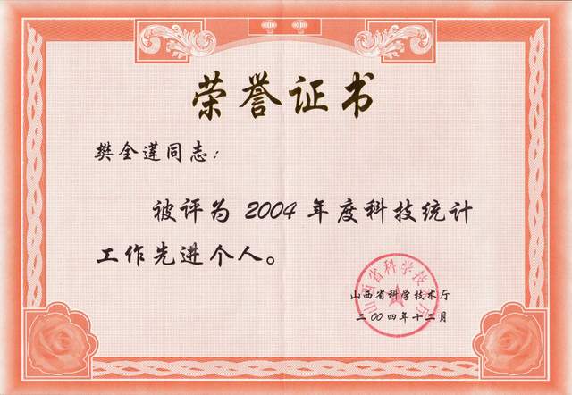 ????2004年12月28日山西省科技廳召開了2004年度山西省科技統(tǒng)計(jì)調(diào)查工作會(huì)議,根據(jù)科技部的要求,對(duì)全省2004年度科技統(tǒng)計(jì)調(diào)查工作進(jìn)行了細(xì)致的安排,同時(shí)對(duì)本年度山西省科技統(tǒng)計(jì)工作評(píng)比結(jié)果進(jìn)行了通報(bào)(晉科技發(fā)[2004]102號(hào)),我院被評(píng)為2004年度山西省科技統(tǒng)計(jì)先進(jìn)單位,科研處樊全蓮副處長(zhǎng)被評(píng)為先進(jìn)個(gè)人。