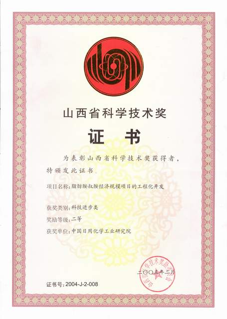 ??? 會(huì)議授予180項(xiàng)山西省科學(xué)技術(shù)獎(jiǎng)(其中一等獎(jiǎng)11項(xiàng)、二等獎(jiǎng)85項(xiàng)、三等獎(jiǎng)84項(xiàng)),中國日化院李秋小副院長“脂肪胺叔胺經(jīng)濟(jì)規(guī)模項(xiàng)目的工程化開發(fā)”1項(xiàng)成果獲科學(xué)技術(shù)二等獎(jiǎng)。