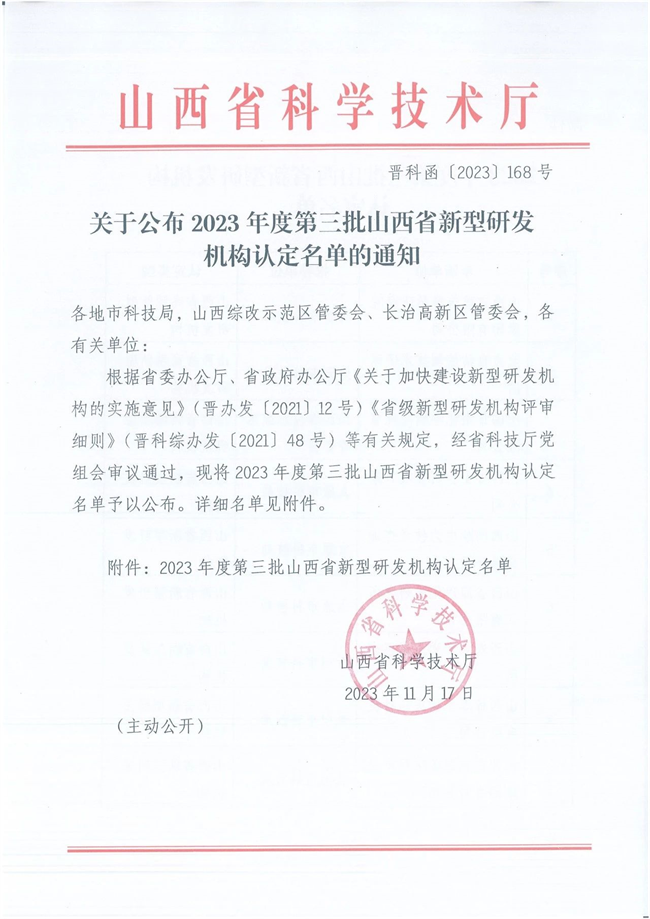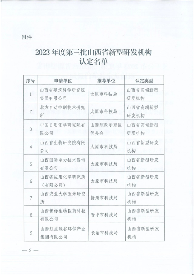 近日,山西省科技廳發(fā)布《關(guān)于公布2023年度第三批山西省新型研發(fā)機(jī)構(gòu)認(rèn)定名單的通知》(晉科函〔2023〕168號(hào)),中國(guó)日用化學(xué)研究院有限公司(以下簡(jiǎn)稱(chēng)“中國(guó)日化院”)在獲批太原市新型研發(fā)機(jī)構(gòu)后再上新臺(tái)階,成功獲批“山西省高端新型研發(fā)機(jī)構(gòu)”。