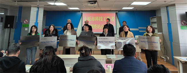 應(yīng)用技術(shù)創(chuàng)新中心主任臺(tái)秀梅作為科技調(diào)查站點(diǎn)負(fù)責(zé)人出席了太原市科協(xié)舉辦的授牌儀式。