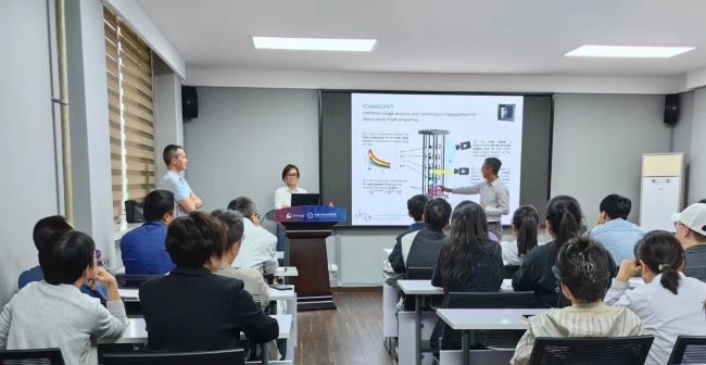會后,泰克利斯公司的工程師對儀器的具體操作流程進(jìn)行了進(jìn)一步的講解培訓(xùn)。日化院科研人員和研究生在工程師的指導(dǎo)下學(xué)習(xí)了儀器的安裝與具體操作,并就操作過程中遇到的問題進(jìn)行互動。通過此次學(xué)術(shù)講座和儀器培訓(xùn),使日化院院科研人員對液體泡沫理論和泡沫儀的性能有了更加深入的認(rèn)識,對后續(xù)儀器的使用和相關(guān)科研工作的開展有很大的幫助和促進(jìn)作用。