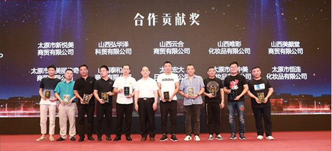 王萬緒院長還出席了當晚舉行的山西美妝藝術(shù)節(jié)暨品觀零售峰會頒獎晚宴,為榮獲“中國化妝品渠道脊梁”和“年度合作貢獻獎”的企業(yè)代表頒獎。