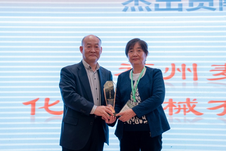 中國(guó)日用化學(xué)工業(yè)研究院首席專家王萬(wàn)緒為獲獎(jiǎng)單位頒獎(jiǎng)