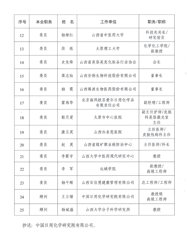 第一屆山西省化妝品標(biāo)準(zhǔn)化技術(shù)委員會委員名單