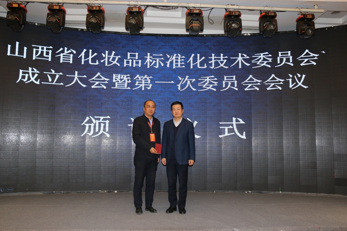 頒發(fā)第一屆山西省化妝品標(biāo)準(zhǔn)化技術(shù)委員會主任委員證書