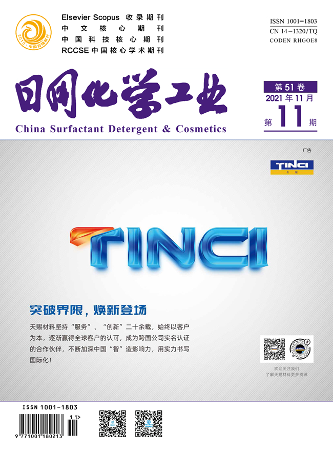 2021年11月,《中國學(xué)術(shù)期刊(光盤版)》電子雜志社有限公司和中國科學(xué)文獻(xiàn)計量評價研究中心聯(lián)合發(fā)布了《中國學(xué)術(shù)期刊影響因子年報(自然科學(xué)與工程技術(shù)·2021版)》,我院《日用化學(xué)工業(yè)》影響力指數(shù)學(xué)科排序和影響因子等期刊評價指標(biāo)再創(chuàng)歷史新高。