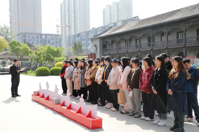 山西國(guó)民師范舊址革命活動(dòng)紀(jì)念館舊址原為山西省立國(guó)民師范學(xué)校,徐向前、薄一波等無產(chǎn)階級(jí)革命家在此受到馬列主義的啟蒙教育,走上革命道路。喜看今朝威勢(shì)壯,先驅(qū)不朽永光輝。通過實(shí)地踐學(xué),日化院團(tuán)員青年深刻體會(huì)在民族危亡之際,有志青年愛國(guó)救亡的奮斗歷程和家國(guó)情懷,激勵(lì)起新時(shí)代中貫徹落實(shí)二十大精神,新征程上勇?lián)肫笮率姑那啻毫α?