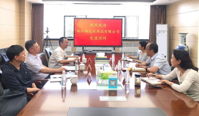 2023年5月17日下午,浙江傳化日用品有限公司董事長(zhǎng)朱滌飛、總經(jīng)理張梁、研發(fā)部長(zhǎng)喻德峰一行來(lái)訪中國(guó)日用化學(xué)研究院。中國(guó)日化院院長(zhǎng)耿濤、院長(zhǎng)助理羅毅、應(yīng)用技術(shù)創(chuàng)新中心主任臺(tái)秀梅等相關(guān)人員接待了來(lái)訪客人并進(jìn)行了技術(shù)交流。
