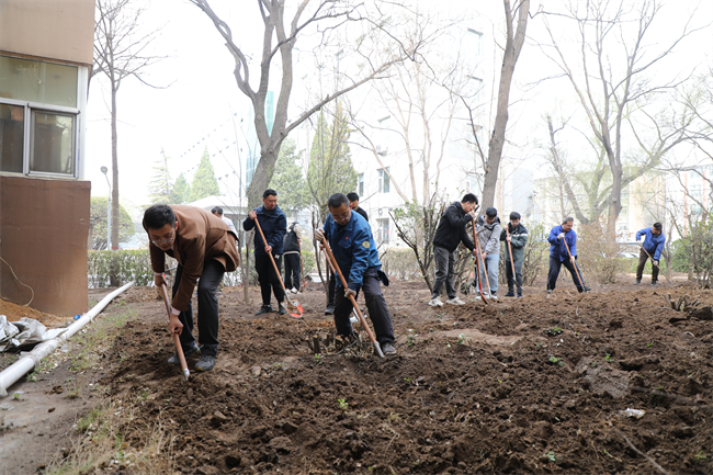 風(fēng)和日麗,春暖花開,全體團(tuán)員青年到達(dá)綜合保障部領(lǐng)取勞動(dòng)工具,在了解勞動(dòng)注意事項(xiàng)后,迅速投入到對(duì)院區(qū)環(huán)境的美化工程中去。春日之美,俯拾皆是,大家奮力揮鋤,翻土篩石,熱情高漲,以勞動(dòng)為榮,樂在其中。雖然不時(shí)刮來陣陣塵土,但團(tuán)員青年依然沒有停下手中的工作,用實(shí)際行動(dòng)詮釋青春奮進(jìn)、勇于擔(dān)當(dāng)?shù)姆瞰I(xiàn)精神。經(jīng)過一個(gè)多小時(shí)的作業(yè),院區(qū)草坪面貌煥然一新。