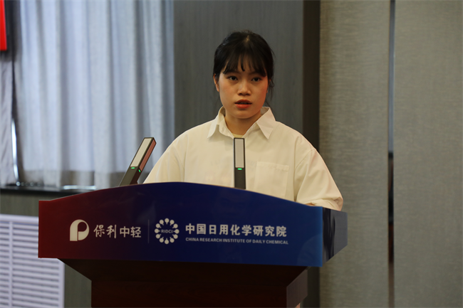 獎(jiǎng)學(xué)金獲得者林曾子同學(xué)代表獲獎(jiǎng)學(xué)生作獲獎(jiǎng)感言。她對(duì)上海自然堂集團(tuán)有限公司長(zhǎng)期以來為我院研究生提供的獎(jiǎng)學(xué)金資助表示真摯的感謝,也對(duì)中國(guó)日化院的培養(yǎng)和導(dǎo)師辛勤的付出表示深深的感激。