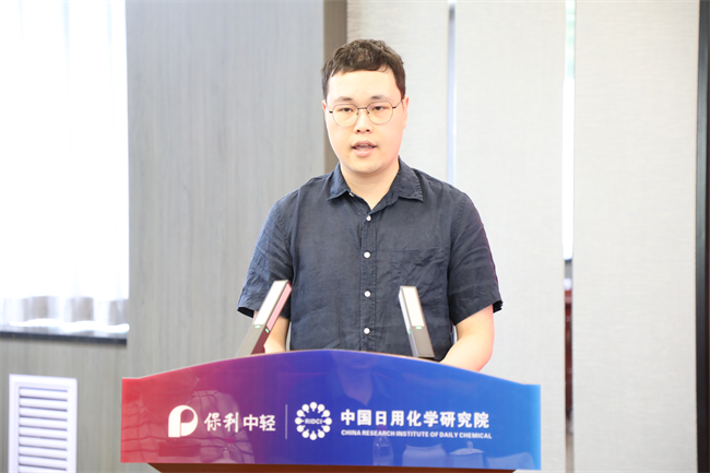 蘇州維美生物科技有限公司總經(jīng)理助理陳濤發(fā)表講話,他肯定了中國日化院作為唯一的國家級科研院所對行業(yè)所做的貢獻(xiàn),介紹了蘇州維美公司在氨基酸表面活性劑方面所做的工作及取得的成績,表達(dá)了對“維美”獎學(xué)金獲得者的熱烈祝賀,并為對全體同學(xué)送上了美好祝愿,希望他們在學(xué)習(xí)和科研中再接再厲,奮勇爭先,實(shí)現(xiàn)遠(yuǎn)大抱負(fù),成就非凡夢想。