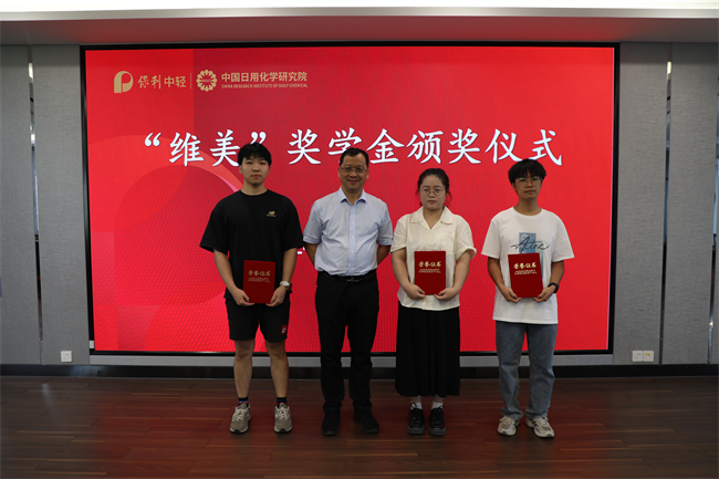 2024年8月13日,中國日化院舉行了“維美”獎學(xué)金頒獎儀式。會議由中國日化院黨委委員、紀(jì)委書記、副院長張小旦主持。蘇州維美生物科技有限公司總監(jiān)周志明先生、總經(jīng)理助理陳濤先生、中國日化院黨委班子成員、部分研究生導(dǎo)師和研究生參加了頒獎儀式。