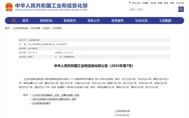 2025年5月9日,國(guó)家工業(yè)和信息化部發(fā)布2025年第7號(hào)公告,批準(zhǔn)發(fā)布《移動(dòng)互聯(lián)網(wǎng)應(yīng)用未成年人個(gè)人信息保護(hù)技術(shù)要求》等1128項(xiàng)行業(yè)標(biāo)準(zhǔn),其中由全國(guó)表面活性劑和洗滌用品標(biāo)準(zhǔn)化技術(shù)委員會(huì)(SAC/TC272)歸口管理的QB/T 2623.3-2025《肥皂試驗(yàn)方法 肥皂中總堿量和總脂肪物含量的測(cè)定》和QB/T 8113-2025《洗滌用纖維素酶制劑》兩項(xiàng)行業(yè)標(biāo)準(zhǔn)獲批發(fā)布。