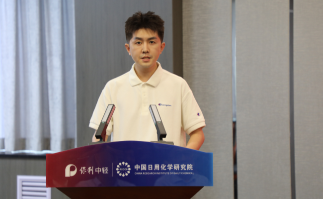 張栩源同學(xué)代表獲獎(jiǎng)學(xué)生發(fā)表感言,他對(duì)上海自然堂集團(tuán)有限公司提供的資助表示誠(chéng)摯的感謝,并對(duì)中國(guó)日化院的培養(yǎng)和導(dǎo)師們的付出表示深切的感激。
