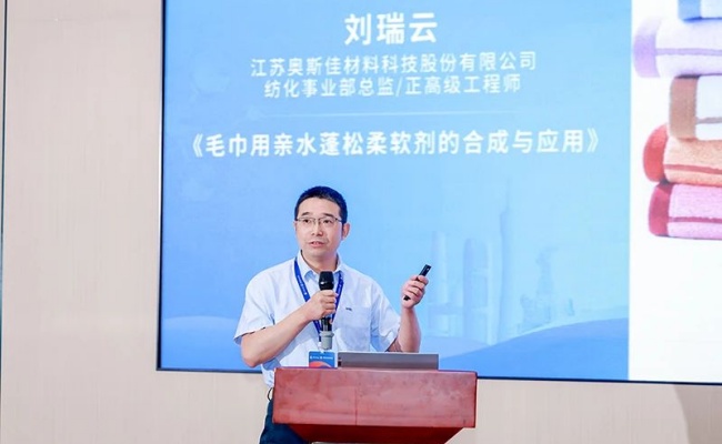 劉瑞云正高級工程師作《毛巾用親水蓬松柔軟劑的合成與應(yīng)用》報告