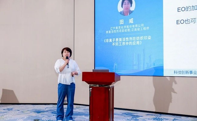 田威正高級工程師作《非離子表面活性劑在紡織印染不同工序中的應(yīng)用》報告