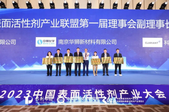 為打破行業(yè)壁壘、跨界整合創(chuàng)新、全面促進(jìn)我國表面活性劑產(chǎn)業(yè)鏈融合發(fā)展,2023中國表面活性劑產(chǎn)業(yè)大會開幕儀式上,500余位政府代表、企業(yè)高管、專家學(xué)者及各地協(xié)會代表齊聚,共同見證中國表面活性劑產(chǎn)業(yè)聯(lián)盟成立儀式。