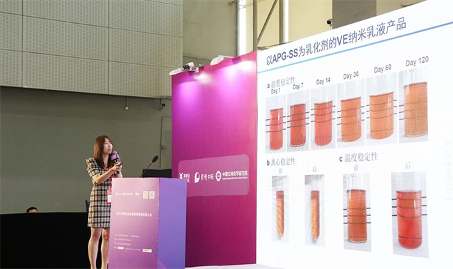 葉琳琳女士做題為“化妝品功效原料現(xiàn)狀和應(yīng)用心得分享”的報(bào)告