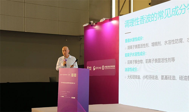 瞿欣先生做題為“活性成分在淋洗類產(chǎn)品中的沉積機(jī)理研究”的報(bào)告